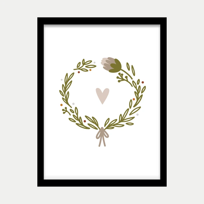 قاب عکس حلقه‌ی برگ، با ظرافت و سادگی ماندگار خود، فضای اتاق را به محیطی آرام، طبیعی و پر از حس محبت تبدیل می‌کند.