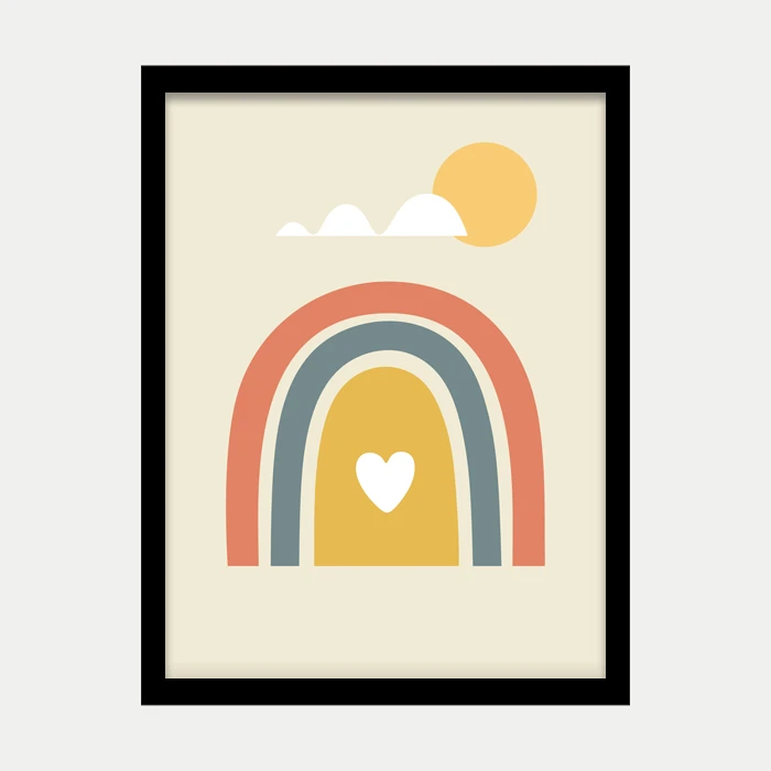 قاب عکس رنگینکمان لطیف با حضور آرامبخش رنگها و نماد عشق در مرکز خود، لحظههای زندگی را روشنتر و پرامیدتر میسازد.